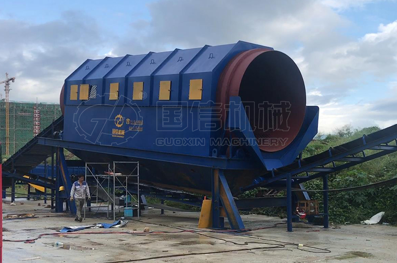 滾筒篩分機(jī)的主要結(jié)構(gòu)為篩分筒,篩分筒由多個(gè)圓形篩孔組成。滾筒篩分設(shè)備的整體和地面平面呈傾斜狀態(tài),外部由隔離罩密封,避免對(duì)環(huán)境造成污染。在使用變速器時(shí),滾筒篩以一定的速度旋轉(zhuǎn)。材料從上到下通過(guò)設(shè)備,然后通過(guò)篩分離。細(xì)料從篩分筒的前端和下端排出,粗料從篩分筒的下端排出。