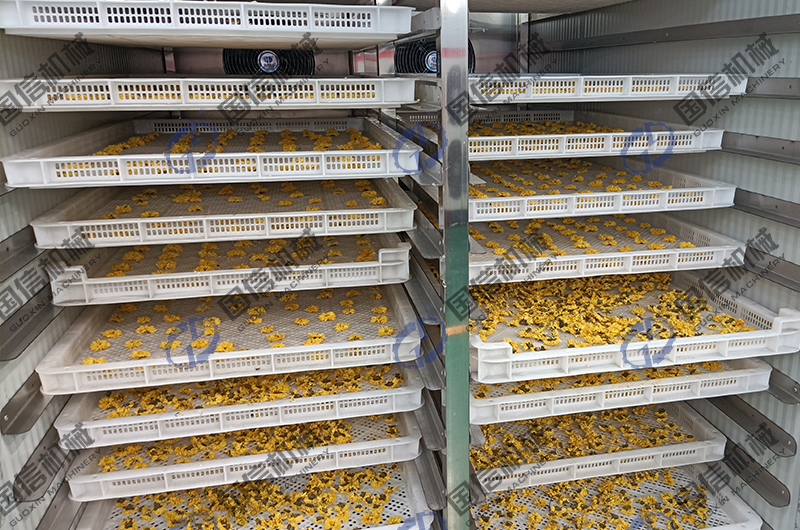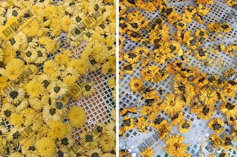 烘干前 烘干后 目前,我們國信廠家的空氣能菊花烘干房,已經在陜西、、甘肅、山東、河南、安徽、貴州、云南等等近百個地區實際使用,配置的熱源系統采用的是目前市場上主流的裝置—空氣能熱泵。這是一種綠色環保型熱源,在為菊花烘干房提供熱量時,不會產生任何的污染物和有害物質,而且一度電能即可產生3.8千瓦時的熱能,非常的高效節能。部分地區還有相關的購機補貼政策,已經成為了菊花烘干的理想設備。國信廠家生產的空氣能菊花烘干房,實現了各農產品烘干、脫水蔬菜加工、中藥材干燥、花茶制做、糧食烘干、肉類和魚類干燥、食品烘干、木材烘干、紙管烘干等,我們在為用戶提供烘干設備的同時,還提供相關的整體烘干解決方案、烘干技術、烘干工藝等服務支持,如果您在進行菊花烘干方面有任何問題,可以隨時與我們取得聯系,公司常年備有樣機,歡迎廣大用戶蒞臨考察,洽談合作。