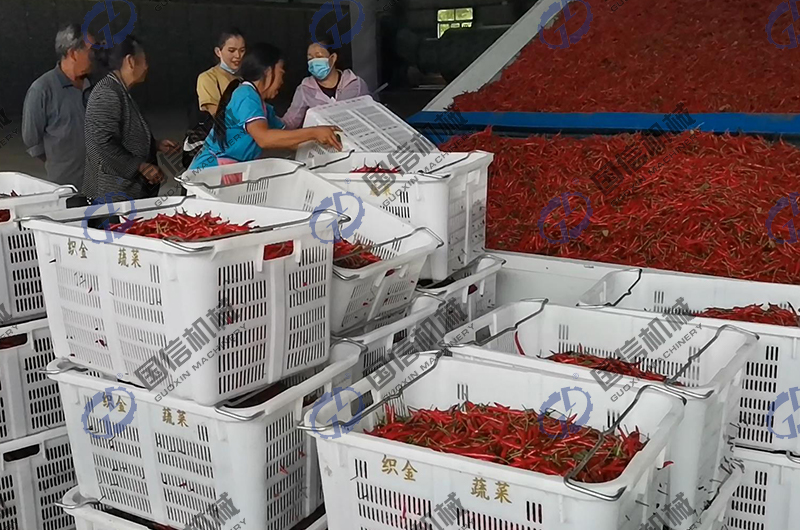 導讀:昨日,我廠派出的專業安裝技術工程師結束了重慶日產2-3噸的辣椒烘干生產線設備的安裝調試工作,并試運行成功,交付客戶使用。據客戶介紹,他們投資這套設備,除了烘干辣椒外,還用于一種中藥材佛手干片的加工。