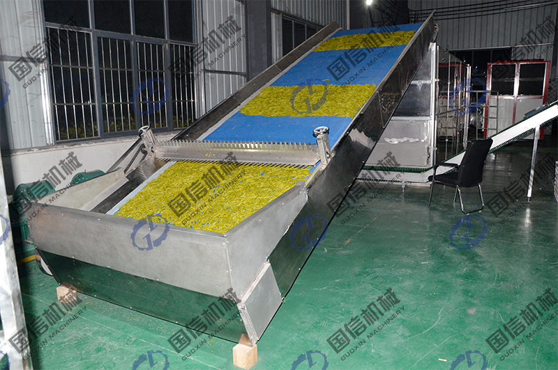 黃花菜全自動殺青烘干流水線設備具有規模化、大批量、連續式加工生產的效果,一次開機就能夠對采摘后的所有黃花菜實現干制加工,產量非常大時,還能夠24小時連續生產,具有閃蒸、殺青、烘干的一體化功能,日處理可達萬斤至十幾萬斤。使用這種新型黃花菜殺青烘干一體機整個加工過程,只需1~2人即可完成,改變了傳統烘干勞動力強度大的缺點,干燥時間也縮短了3分之二以上,也大大的節約了成本,熱源方面可以選擇燃煤、燃生物質顆粒、天然氣、蒸汽、電(空氣能熱泵)等類型,然后搭配國信廠家的換熱系統,置換出純凈的熱風對黃花菜干制加工,不會對其品質造成污染,再加上智能化控制系統,可以提升烘干品質,是集中產業化黃花菜烘干的理想設備。