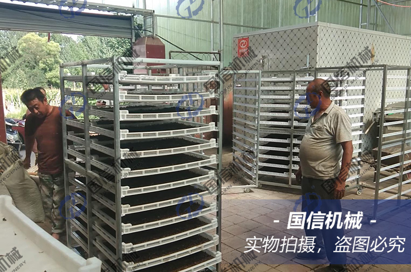 根據(jù)連翹烘干種植戶的反饋得出,先將采收的連翹挑選裝盤,建議使用不銹鋼托盤、烘干效率較高,然后推入烘干房。烘干過(guò)程的第1~2小時(shí)溫度設(shè)定60度不排濕,第3~12小時(shí)溫度設(shè)定55度+排濕功能,這時(shí)要根據(jù)濕度大小來(lái)設(shè)定排濕的模式。后期連翹烘干的溫度設(shè)定為65度+定時(shí)排濕直到完全烘干。這時(shí)烘出的連翹干燥均勻,干凈無(wú)污染,品相和干燥度達(dá)到理想的狀態(tài),非常重要的是連翹及藥用成份得到有效的保存,并且整個(gè)烘干過(guò)程節(jié)能效果顯著,且無(wú)任何污染物排放。